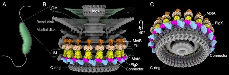 中国科学院南海海洋研究所热带海洋环境与岛礁生态全国重点实验室高贝乐研究员团队联合耶鲁大学医学院Jun Liu团队,揭示了细菌复杂鞭毛马达结构的新组分,丰富了对定子-转子相互作用复杂性的理解。相关成果以“Tetrameric PilZ protein stabilizes stator ring in complex flagellar motor and is required for motility in Campylobacter jejuni”为题,发表于国际著名综合性期刊PNAS。中国科学院南海海洋研究所2020级博士生陈园园和耶鲁大学医学院Shoichi Tachiyama为共同第一作者,研究员高贝乐为通讯作者。