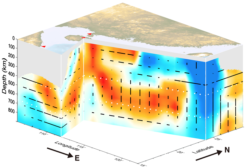 研究还发现,海南地幔柱的形态和岩浆活动模式与南海的区域构造环境密切相关。南海在张裂之前的晚中生代时期,经历了古太平洋板块的复杂俯冲过程,目前仍被俯冲带所环绕。研究表明,南海深部地幔过渡带和下地幔中存在显著的俯冲物质痕迹,大量地壳物质和流体通过俯冲进入地球深部,榴辉岩等物质被卷入上升的地幔柱中。因此,海南地幔柱表现出热化学地幔柱的几何形态特征,榴辉岩等折返物质的加入削弱了上涌的正浮力,使得大部分岩浆物质在岩石圈层面发生横向流动,经局部聚集侵入到地壳和沉积层中,形成了现今南海晚新生代岩浆活动的分布态势。