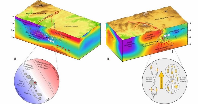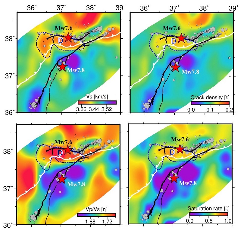 更重要的是,第一次地震使Çardak断层法向应力显著降低,激活该断层,促使饱和流体沿断层及裂缝侵入断裂带,增加流体孔隙压力,触发第二次地震。这一研究首次从多物理参数角度揭示了土耳其双震差异化的发震机制,明确流体侵入在第二次地震触发中的关键作用,为地区防震减灾提供了重要地球物理依据。