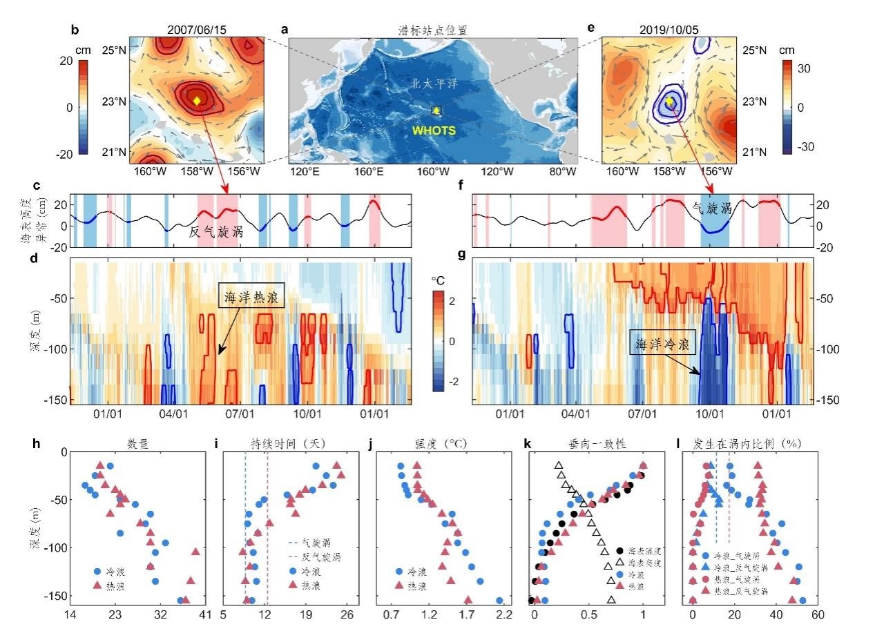 潜标观测揭示海洋次表层热浪与冷浪的发生与中尺度涡密切相关