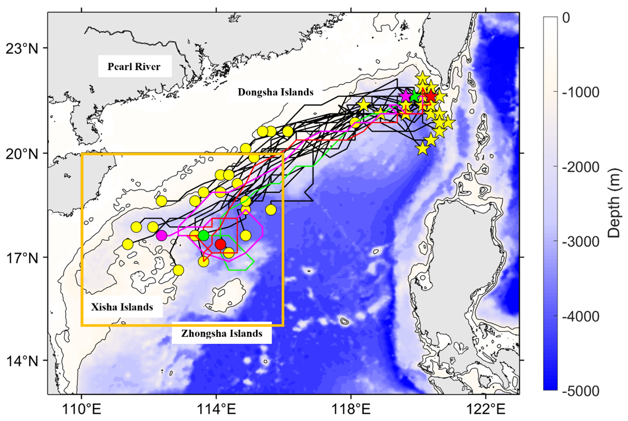 该研究系统揭示了黑潮反气旋涡旋在南海的演化规律,阐明了长寿命涡旋在夏季的再增强机制。研究成果深化了对南海中尺度动力过程的理解,揭示了涡旋与地形及背景环流之间的复杂耦合关系,为提升区域海洋动力过程的模拟与预测能力提供了有力的科学支撑。