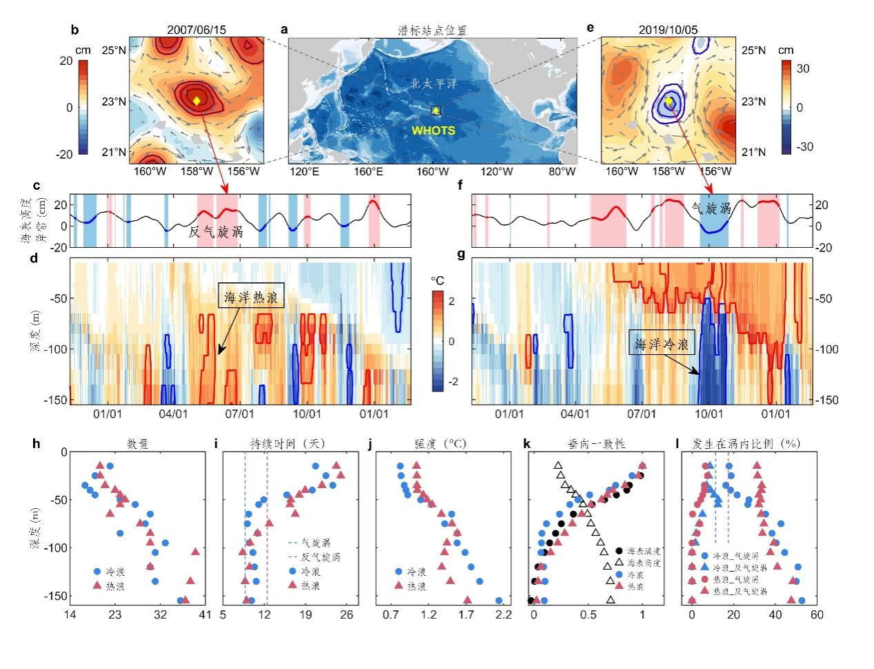 潜标观测揭示海洋次表层热浪与冷浪的发生与中尺度涡密切相关